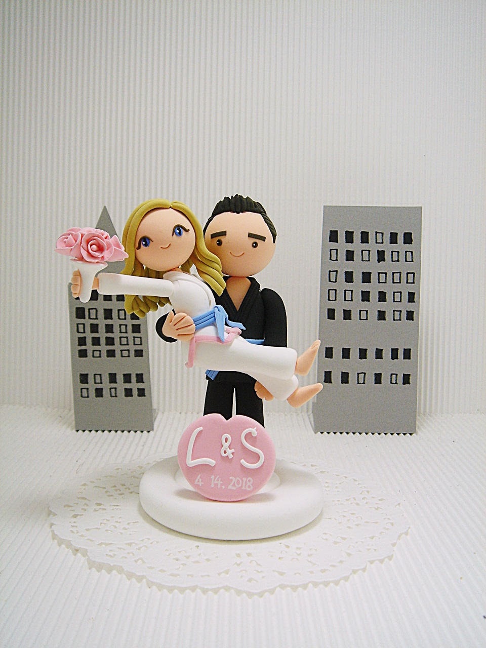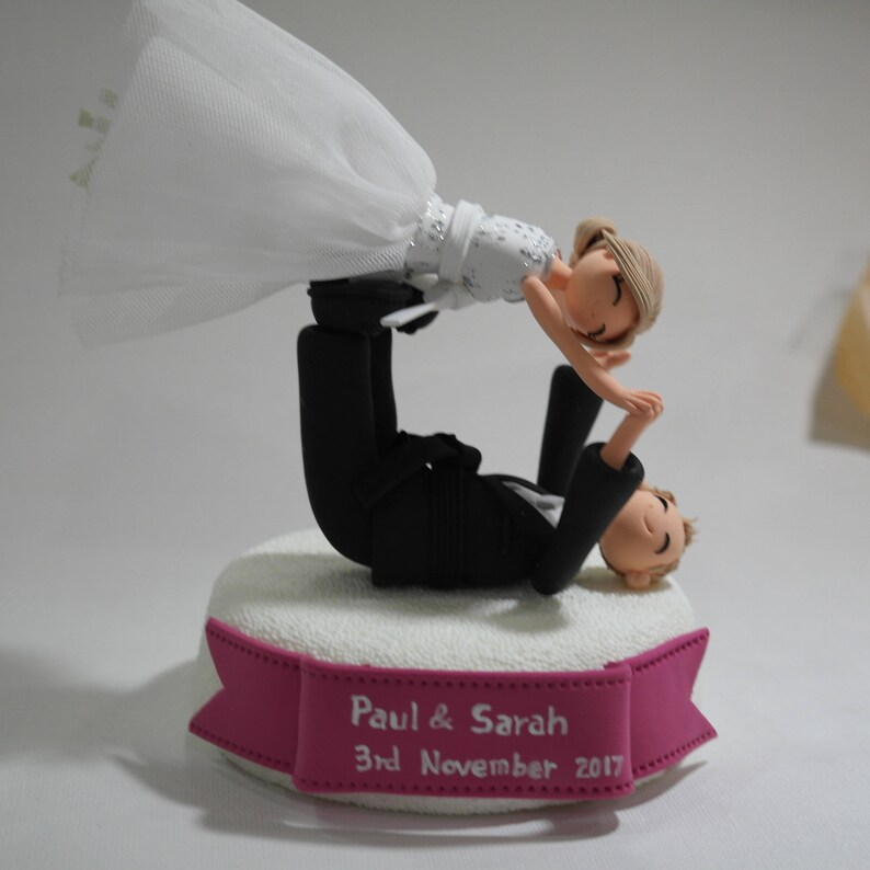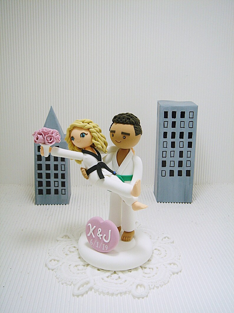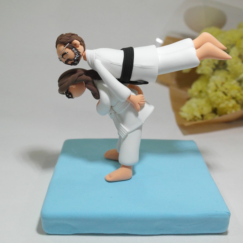 My cake toppers are all customizable ** all cake toppers are 100% handmade from clay without the use of molds. We offer promotional price for this item. Lovely and playful jiu jitsu, ju jitsu mania couple custom wedding cake topper, personalized cake topper, decoration and perfect gift to couple as wedding, engagement,bridal shower and anniversary specialty. We offer promotional price for this item.