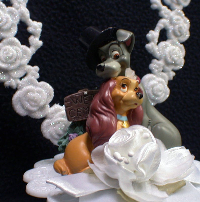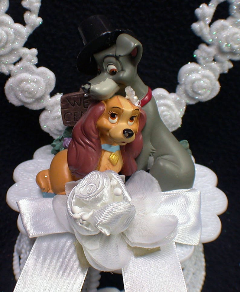 Lady and the tramp wedding cake topper. This turns out to be a bad move, as no dog is above the law. Lady is a sweet cocker spaniel with a loving home. Tramp tells lady that when the baby moves in, the dog moves out.